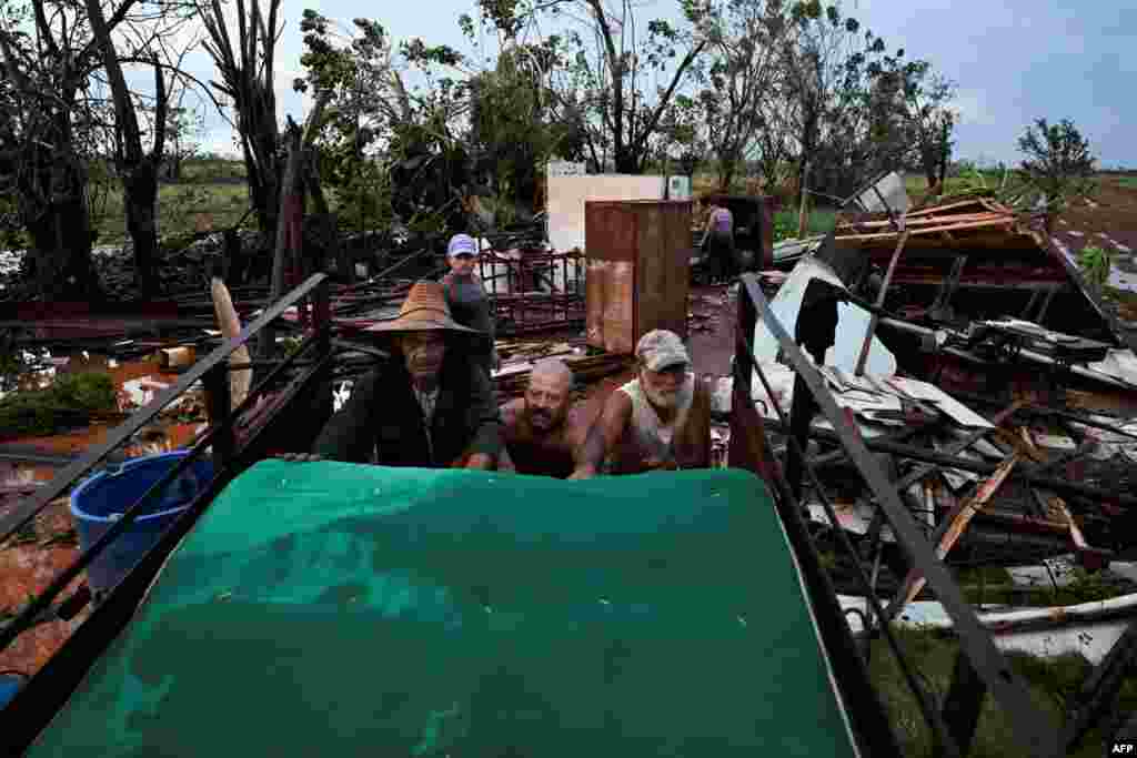 Una familia cubana intenta recuperar algunas pertenencias entre los escombros de una casa destruida tras el paso del huracán Rafael en Alquízar, provincia de Artemisa, Cuba, el 7 de noviembre de 2024.